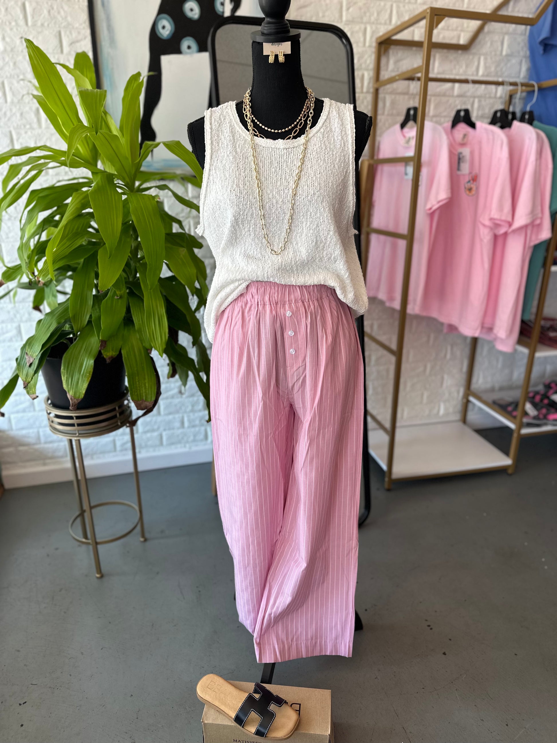 Introducing Bella Pants, the perfect combination of style and function. These pants feature a unique button detail and stylish striped pockets. Made with high-quality materials, they are both durable and fashionable. Upgrade your wardrobe with Bella Pants and elevate your style game.
