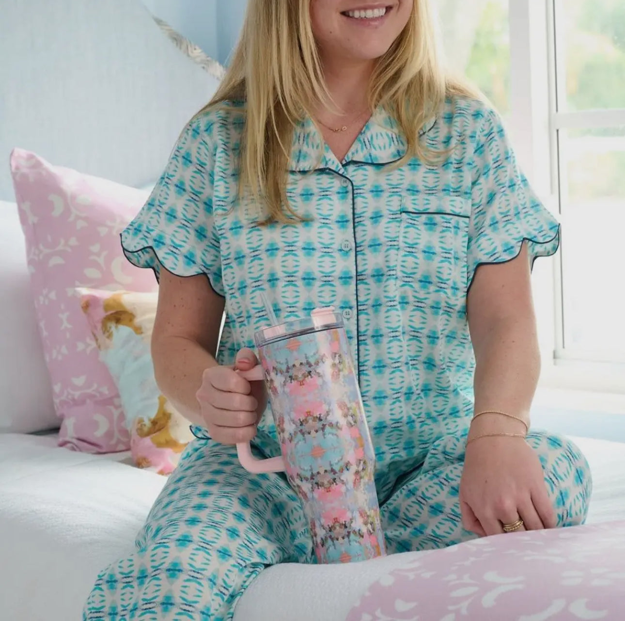 Laura Park! Sip in Style! The Brooks Avenue 40oz Travel Tumbler adds a pop of color to your daily routine with its signature mix of pinks, aqua blue, and hints of lime green. Designed for life on the go, this lightweight, insulated tumbler keeps drinks hot or cold for hours. Featuring a sturdy handle, a spill-resistant lid, and a sleek reusable straw, it's perfect for everything from morning coffee runs to poolside lounging.