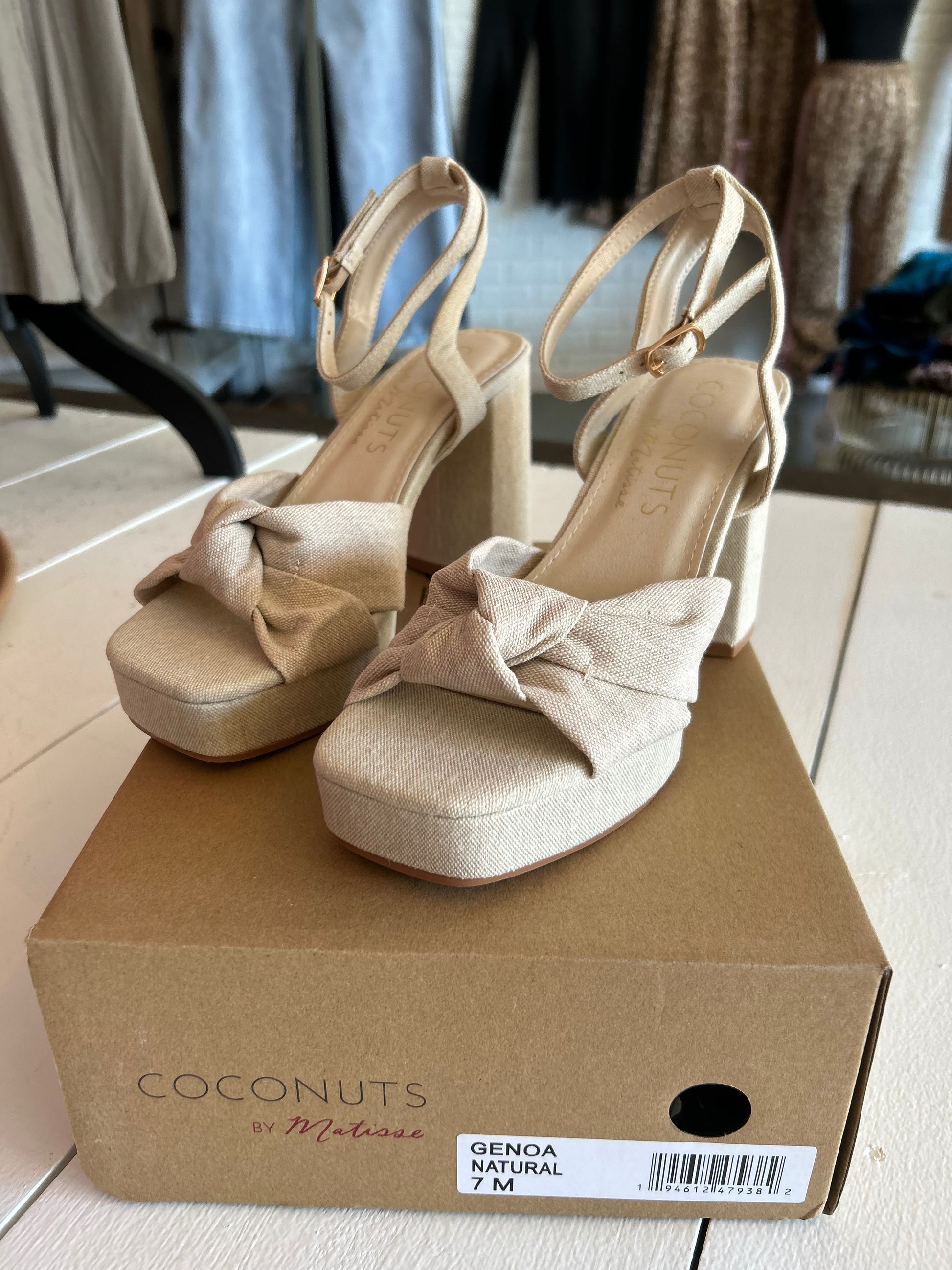 "Add style and comfort to your footwear collection with Coconuts by Matisse Genoa heels. The chunky heel provides stability and a trendy look, while the natural color complements any outfit. For the perfect fit, we recommend sizing up for half sizes. Elevate your wardrobe with these versatile and chic heels."