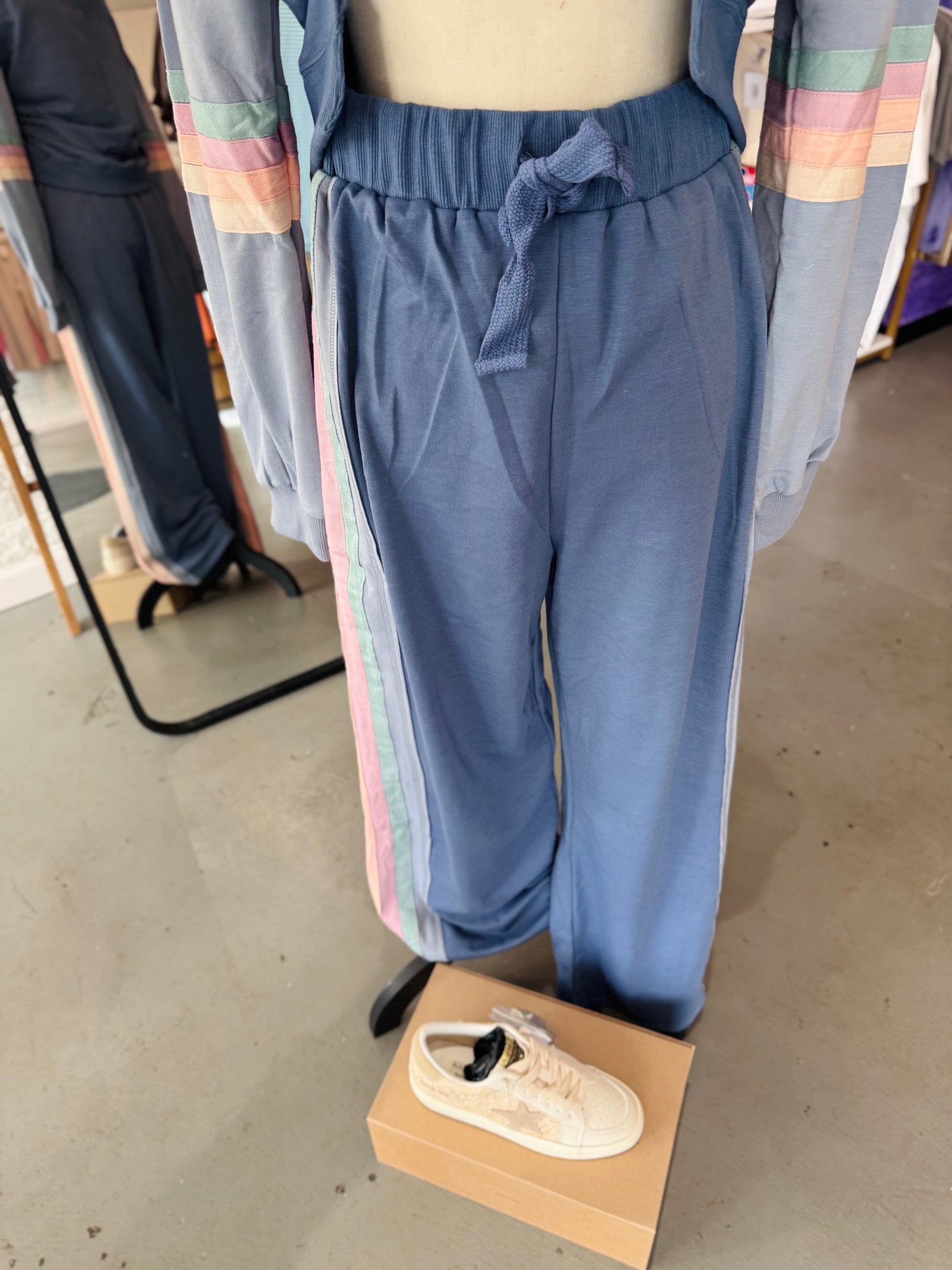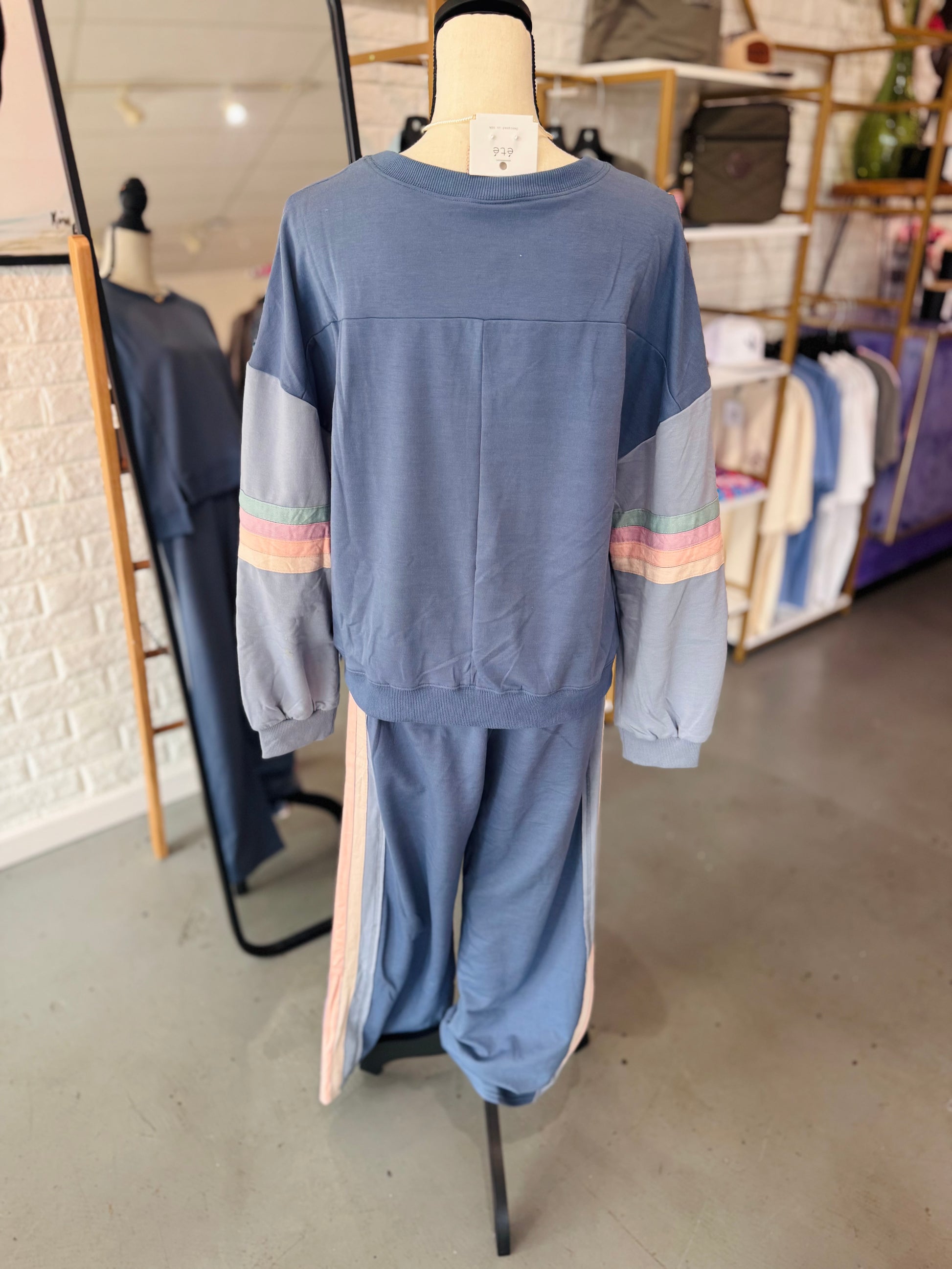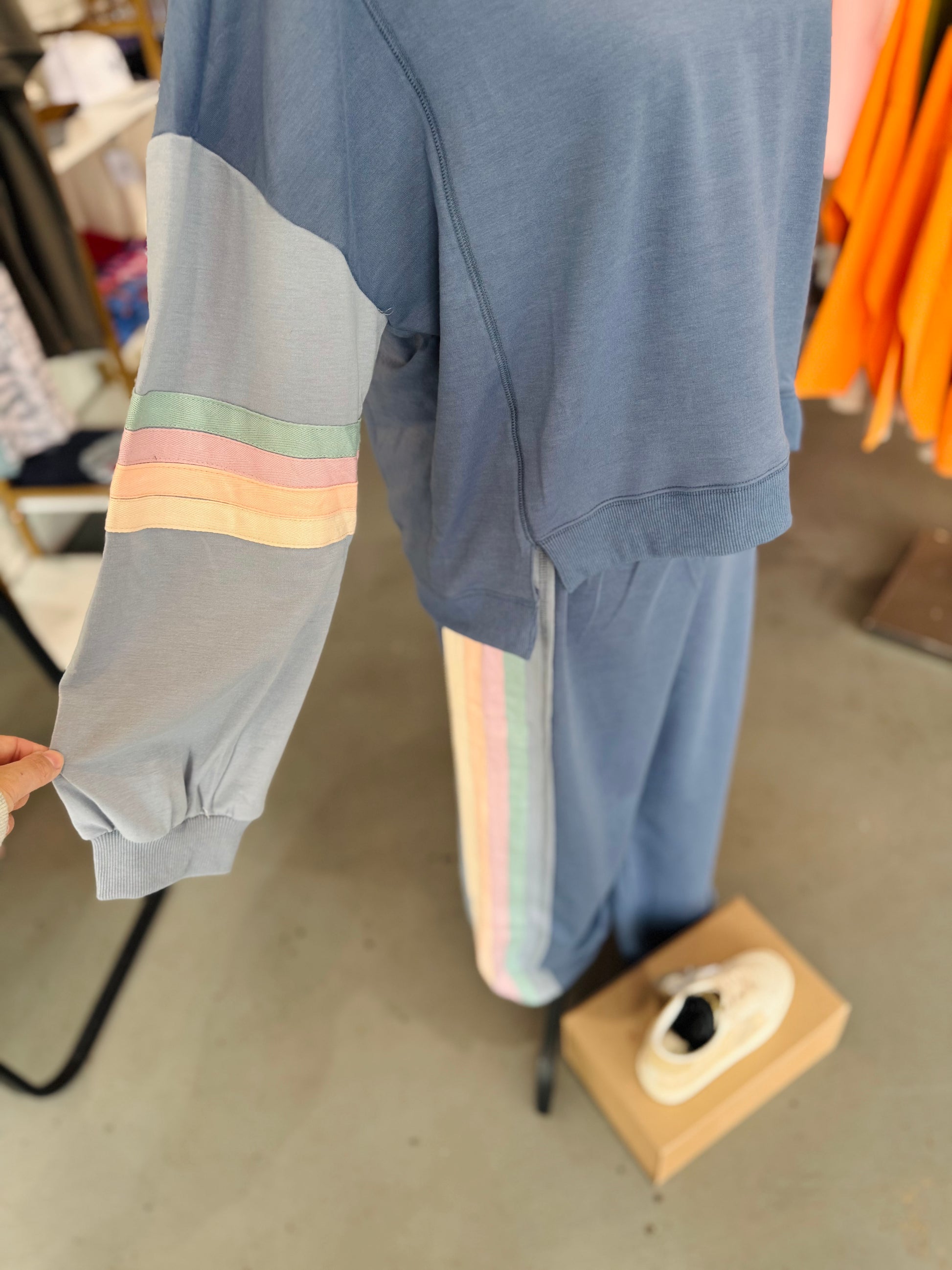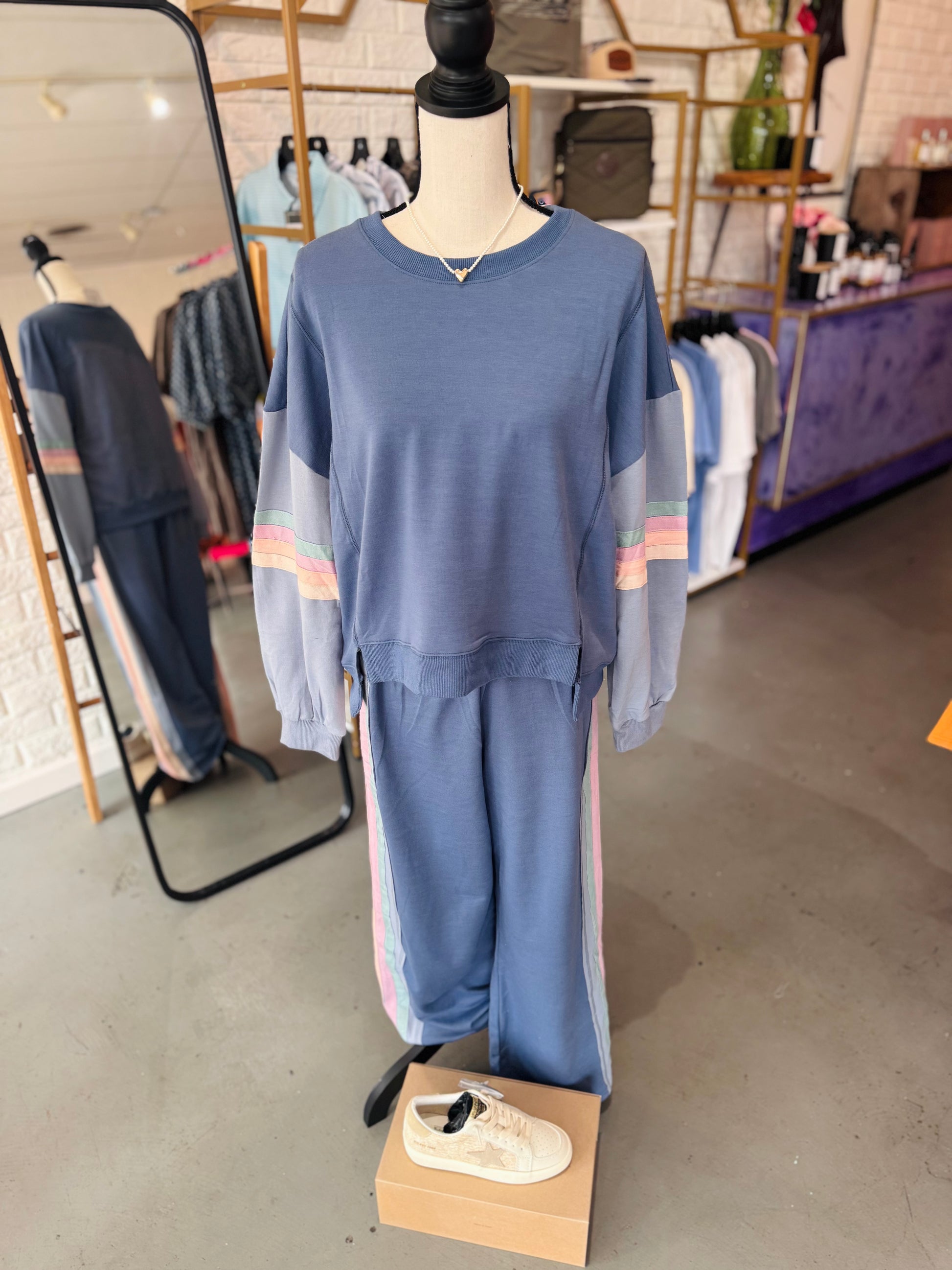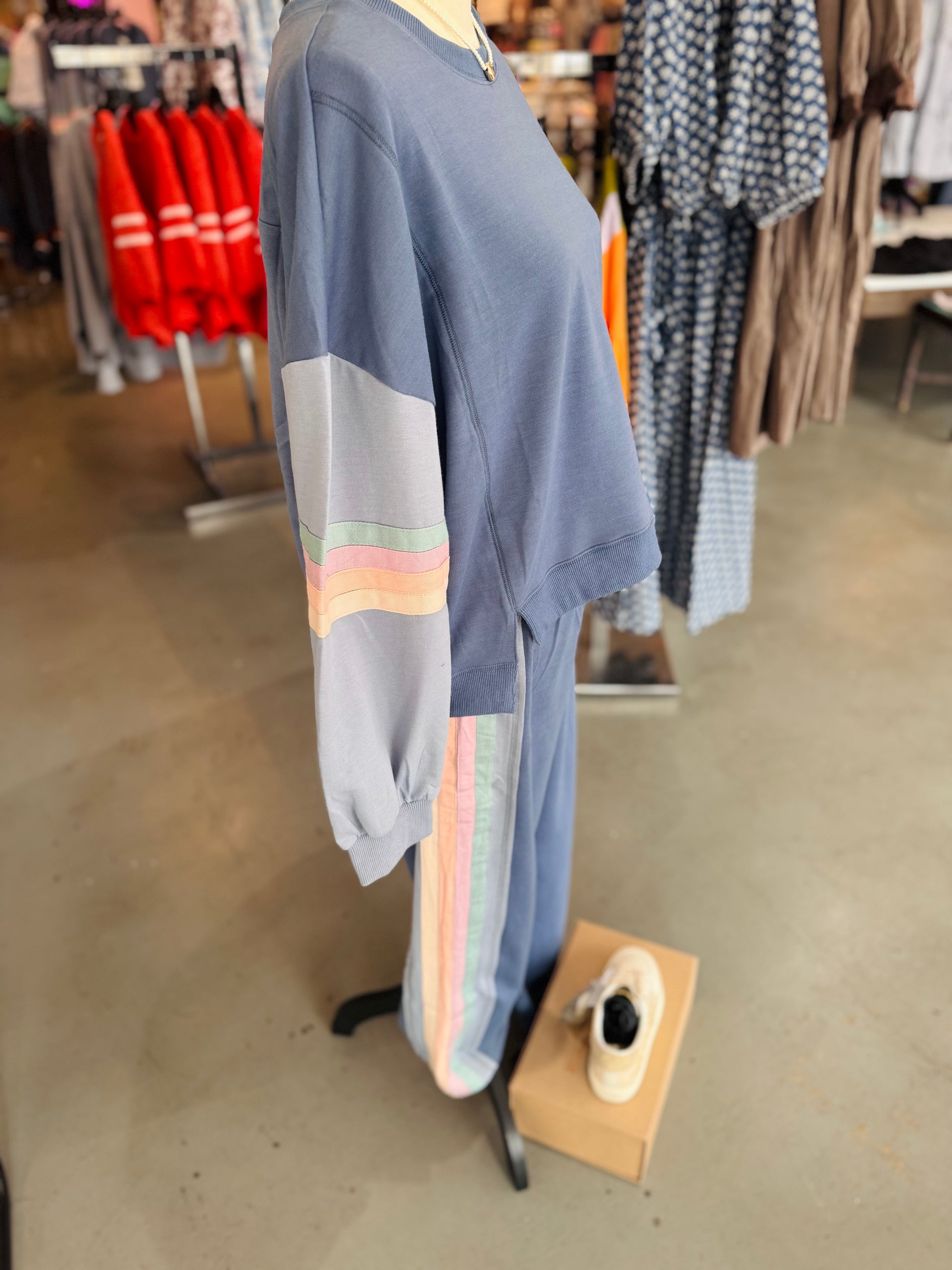 This Never Been Better Set is perfect for those looking for comfort and style. The side slit sweatshirt adds a trendy touch, while the stripe detail on the arm and leg with added pocket adds a chic element. Complete with a tie waist for the perfect fit, this set is true to size. Experience the ultimate blend of fashion and function.