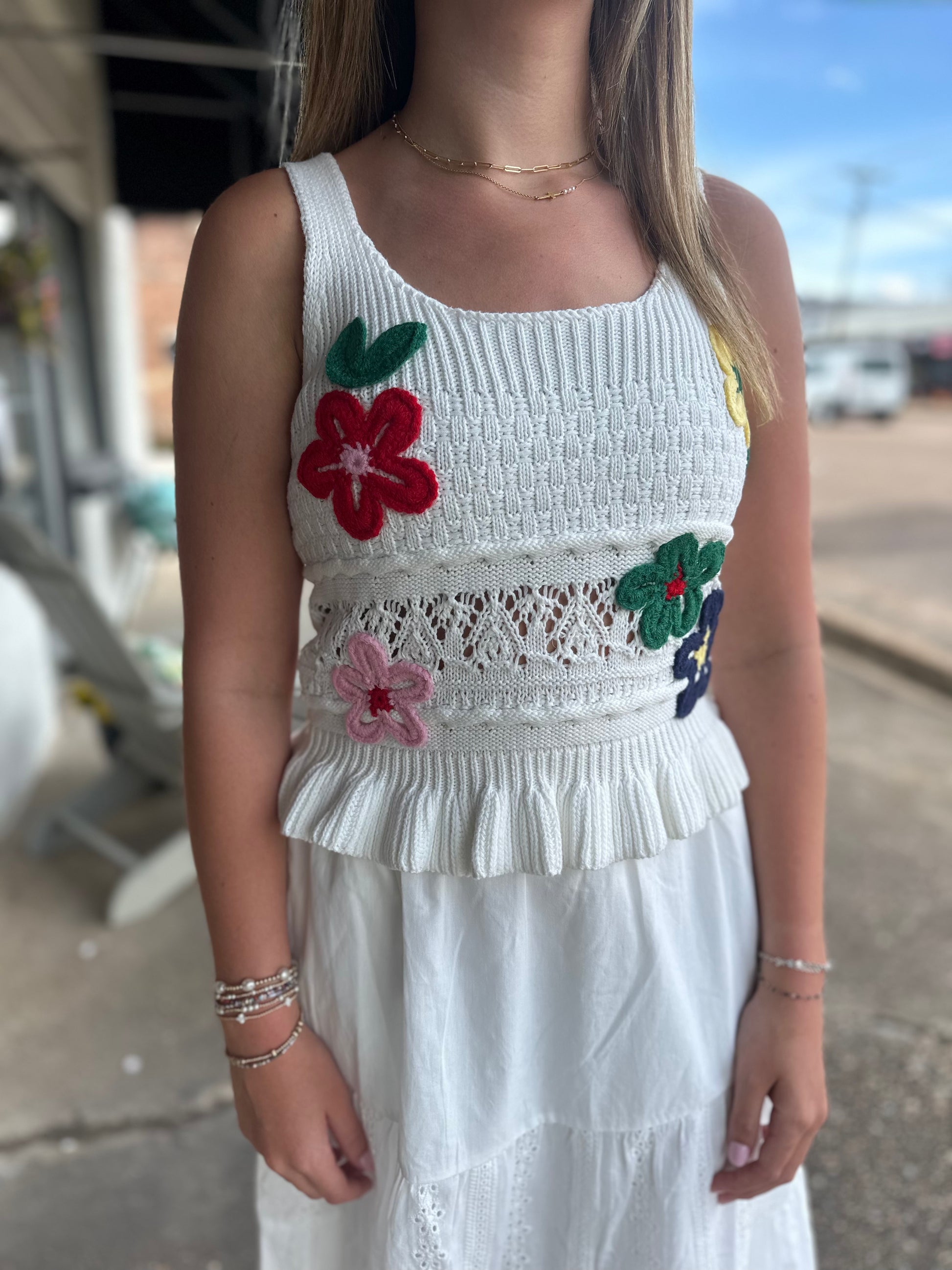 The Woodstock Tank is a vintage-inspired addition to your wardrobe. With an embroidered floral design and scoop neck, this tank brings a touch of nostalgia to any outfit. Crafted from a comfortable knit fabric, it offers a true-to-size fit, making it a versatile and stylish choice for any occasion.